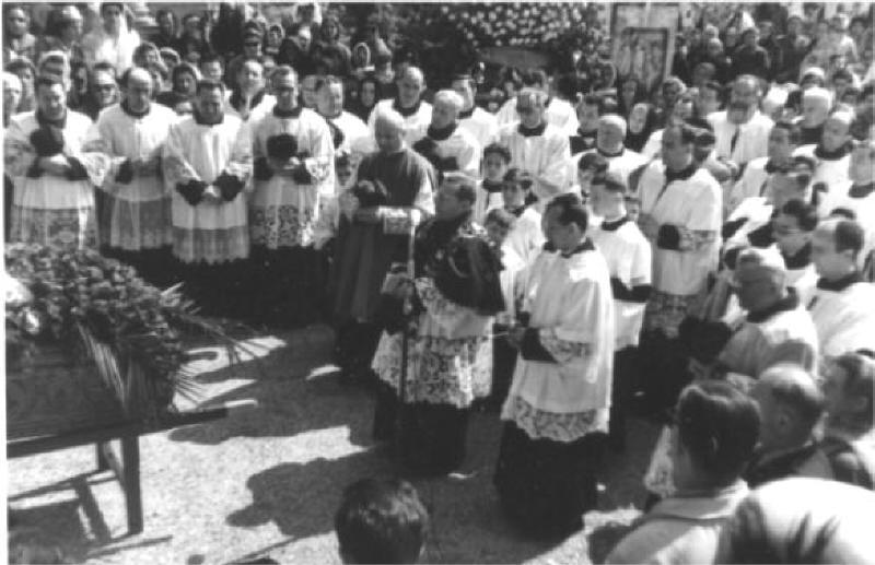 1942 circa. Gli oratori maschili e femminili fanno corona allAbate,